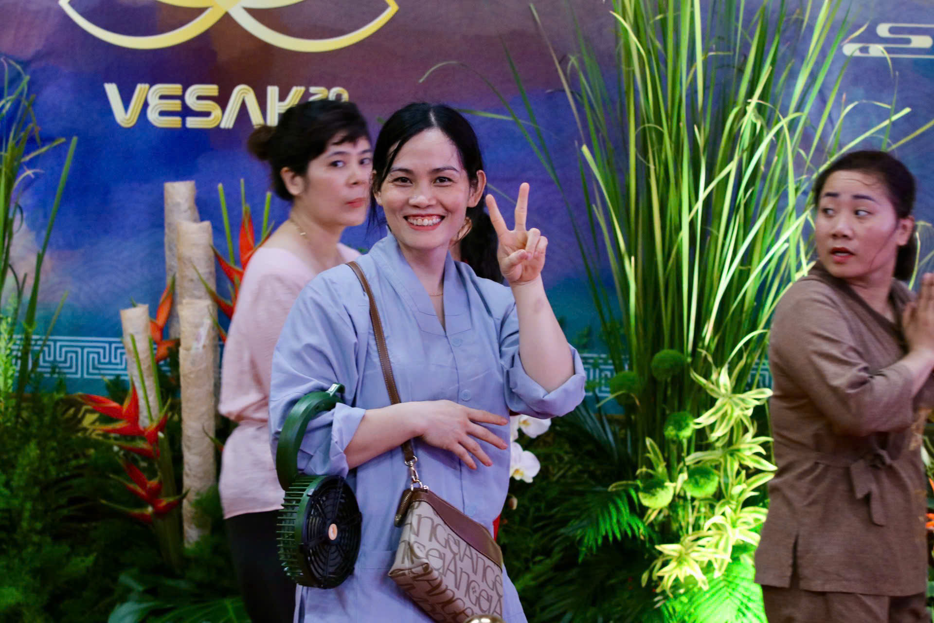 Bên trong chính điện, nơi ánh nến tỏa dịu, hương trầm thoảng nhẹ, tháp Xá lợi được tôn trí trang nghiêm. Không ai nhắc ai, nhưng ai cũng khẽ khàng bước chân, chắp tay im lặng – như thể ánh sáng vi diệu từ Xá lợi đang sưởi ấm từng tâm hồn đang cần chữa lành.